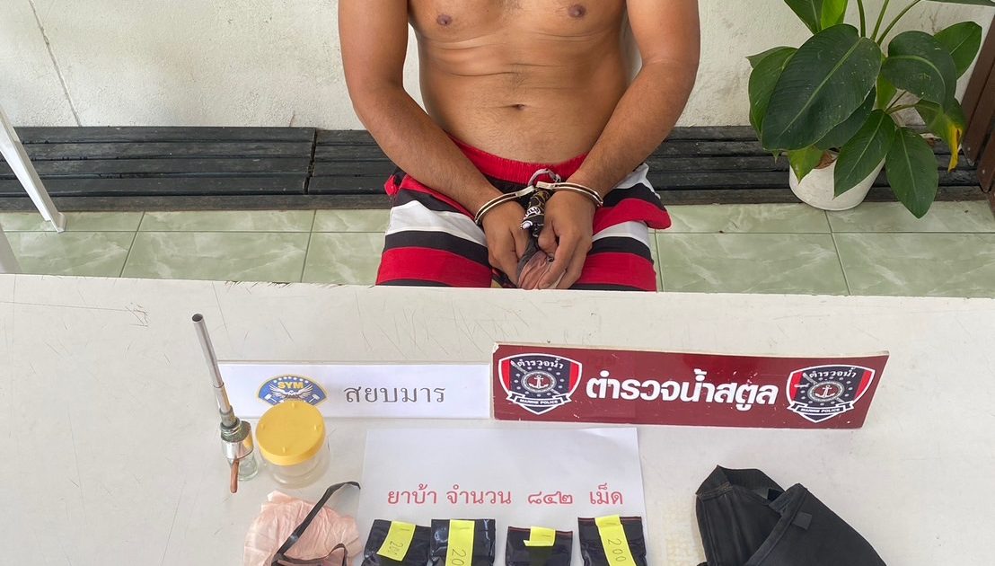 เมื่อวันที่ 19 มี.ค. 2568 เวลาประมาณ 10.00 น. ภายใต้การอำนวยการของ พ.ต.อ.เอกณัฏฐ์ เหลืองแดง ผกก.สภ.ละงู สั่งการให้ พ.ต.ท.ฟัยซาล ฮะอุรา รอง ผกก.สส.สภ.ละงู พ.ต.ท.ณรงค์ กลับใจได้ สว.สส.สภ.ละงู พร้อมด้วยเจ้าหน้าที่ชุดสืบสวน สภ.ละงู (ชป.สยบมาร) และเจ้าหน้าที่ กก.๙ บก.รน.ร่วมกันจับกุม นายณัฐพนธ์ สาเล่หมัน อายุ 39 ปี อยู่บ้านเลขที่ 100 หมู่ที่ 17 ตำบลละงู อำเภอละงู จังหวัดสตูลพร้อมด้วยของกลาง 1. ยาเสพติดให้โทษประเภท 1 (เมทแอมเฟตามีนหรือยาบ้า) เม็ดสีส้ม ลักษณะกลมแบน ประทับตัวอักษร WY ด้านหนึ่งของเม็ดยา บรรจุอยู่ในถุงพลาสติกน้ำเงินแบบกดปิด-ดึงออก ขนาดกว้างประมาณ 4.5 ซ.ม. ยาวประมาณ 9.5 ซ.ม. จำนวน 4 ถุง แต่ละถุงมียาบ้าบรรจุอยู่ถุงละ จำนวน 200 เม็ด รวมยาบ้าทั้งหมด จำนวน 800 เม็ด 2.ยาเสพติดให้โทษประเภท 1 (เมทแอมเฟตามีนหรือยาบ้า) เม็ดสีส้ม ลักษณะกลมแบน ประทับตัวอักษร WY ด้านหนึ่งของเม็ดยา บรรจุอยู่ในถุงพลาสติกน้ำเงินแบบกดปิด-ดึงออก ขนาดกว้างประมาณ 4.5 ซ.ม. ยาวประมาณ 9.5 ซ.ม. จำนวน 1 ถุง ภายในมียาบ้าบรรจุอยู่ จำนวน 42 เม็ด