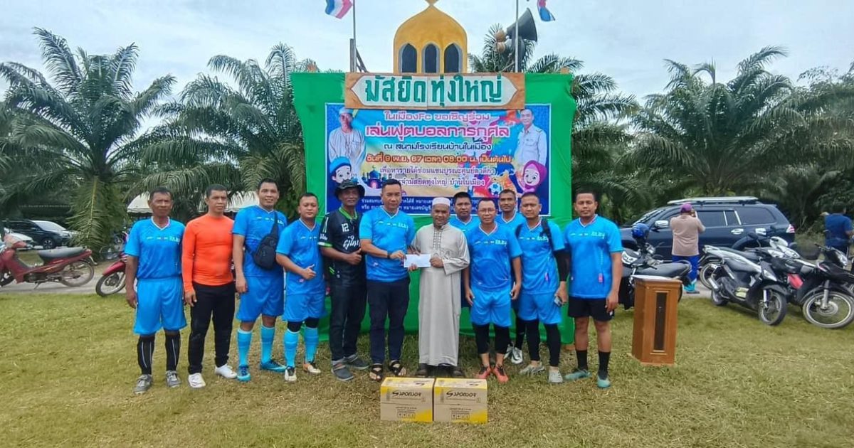 ตำรวจละงู ร่วมเล่นฟุตบอลการกุศล 9 พฤศจิกายน 2024 โดย admin / ข่าวกิจกรรม,ข่าวประชาสัมพันธ์ ทำเพื่อตัวเอง…ได้เพียงแค่สิ้นใจ ทำเพื่อคนทั่วไป..แม้สิ้นใจไป…ก็ยังมีความดี…ไว้ชื่นชม เมื่อวันที่ 9 พ.ย.67 เวลา 09.00 น. พ.ต.อ.เอกณัฏฐ์ เหลืองแดง ผกก.สภ.ละงู ได้มอบหมายให้พ.ต.ท.อาบัด สาหัด สว.อก.สภ.ละงู, พ.ต.ต.วิทยา บ่อเตย สวป.(ชส)สภ.ละงู ข้าราชการตำรวจ สภ.ละงู,ชุด ชมส.สภ.ละงู ร่วมเล่นฟุตบอลการกุศล และบริจาคสปอนเซอร์ 2 ลัง ให้แก่มัสยิดทุ่งใหญ่ (บ้านในเมือง)เพื่อหารายได้บูรณะซ่อมแซม ศูนย์อาคารเรียนตาดีกา ณ สนามโรงเรียนบ้านในเมือง หมู่ที่ 12 ตำบลละงู อำเภอละงู จังหวัดสตูล
