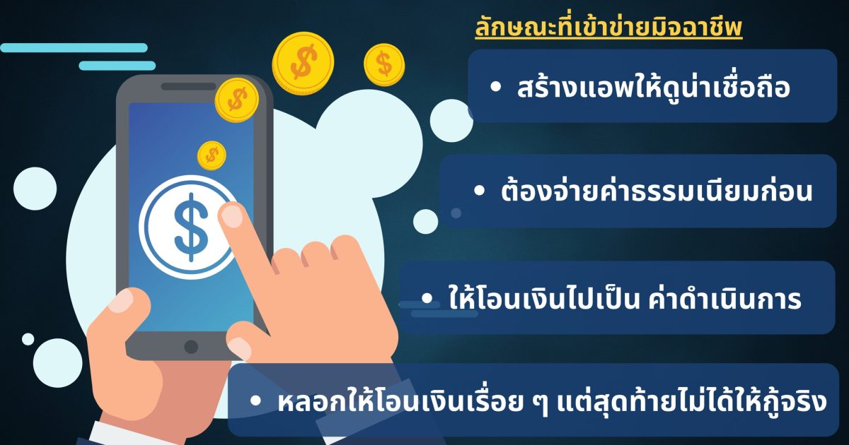 2. หลอกลวงสามารถกู้เงินได้ง่ายในวงเงินหลายหมื่นบาท โดยเสียค่าดำเนินการ 10% ของยอดเงินที่ต้องการกู้ จากนั้นจะมีเงินโอนเข้าบัญชีธนาคารในวันรุ่งขึ้น