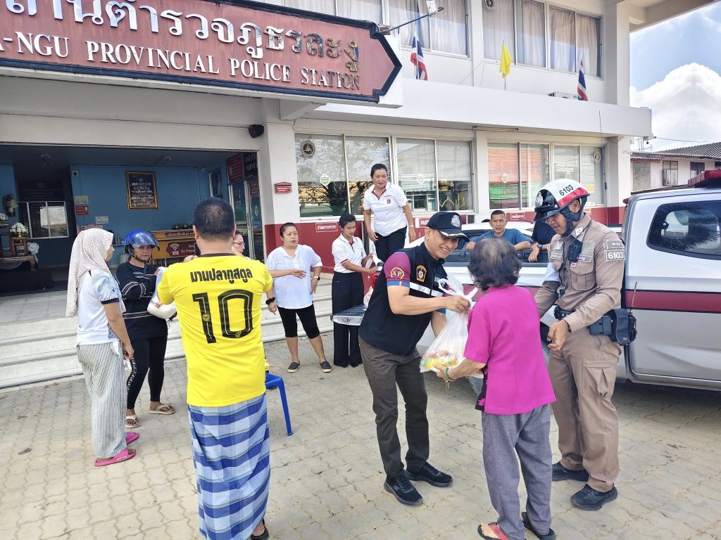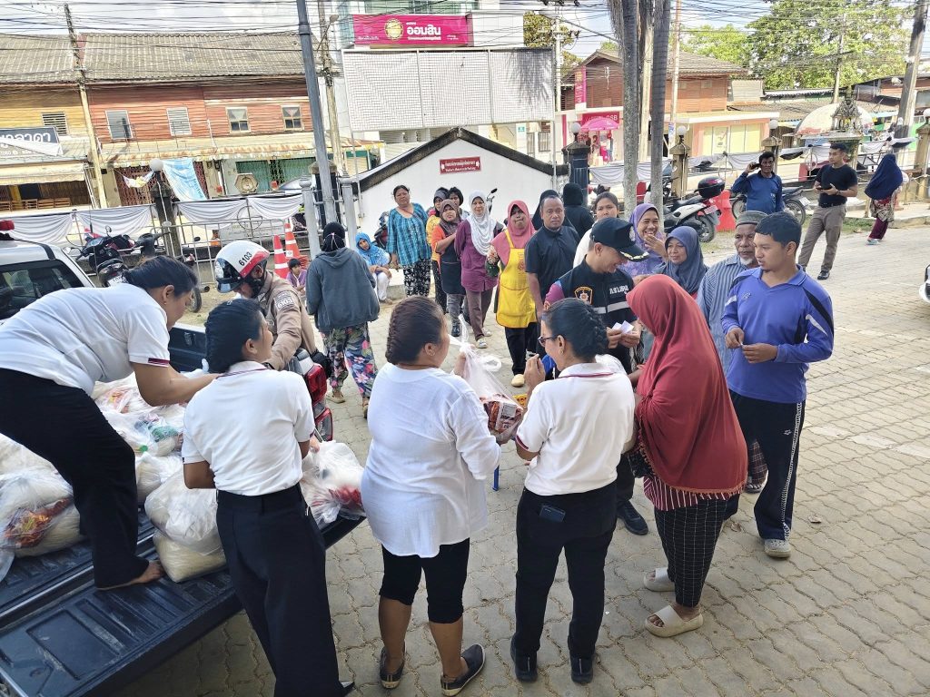 ผกก.สภ.ละงู ร่วมกับแม่บ้านตำรวจ แจกถุงยังชีพ 7 ธันวาคม 2025 โดย admin / ข่าวกิจกรรม,ข่าวภารกิจผู้บังคับบัญชา พ.ต.อ.เอกณัฏฐ์ เหลืองแดง ผกก.สภ.ละงู ร่วมกับแม่บ้านตำรวจ เยี่ยมเยียนและมอบถุงยังชีพแก่ผู้ประสบอุทกภัย เมื่อวันที่ 7 ธันวาคม 2568 เวลา 09.30 น. พันตำรวจเอก เอกณัฏฐ์ เหลืองแดง ผู้กำกับการสถานีตำรวจภูธรละงู (ผกก.สภ.ละงู) ได้นำคณะ “แม่บ้านตำรวจ” ลงพื้นที่เพื่อ บรรเทาทุกข์ และ ให้กำลังใจ แก่พี่น้องประชาชนที่ได้รับผลกระทบจากเหตุอุทกภัยน้ำท่วมในพื้นที่อำเภอละงู กิจกรรมครั้งนี้ได้ดำเนินการ แจกจ่ายถุงยังชีพ ซึ่งภายในบรรจุเครื่องอุปโภคบริโภคที่จำเป็น เพื่อช่วยแบ่งเบาภาระในชีวิตประจำวัน และเป็นการ แสดงความห่วงใย จากข้าราชการตำรวจและครอบครัว การลงพื้นที่ครั้งนี้ไม่เพียงแต่เป็นการมอบสิ่งของ แต่ยังเป็นการ สร้างขวัญกำลังใจ และยืนยันว่า สถานีตำรวจภูธรละงูพร้อมอยู่เคียงข้างประชาชน ในทุกสถานการณ์วิกฤต