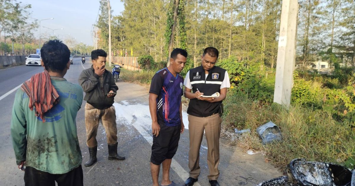 พงส.ตรวจที่เกิดเหตุ เหตุว.40 ที่ถนนสายบายพาส ฝั่งไปแยกนาพญา 11 กุมภาพันธ์ 2025 โดย admin / ข่าวกิจกรรม,ข่าวประชาสัมพันธ์,งานสอบสวน เมื่อวันที่ 12 ก.พ.2568 เวลา 07.00 พ.ต.ท.อดุล จันทรวงศ์กุล สว.สอบสวน สภ.ละงู ได้มาตรวจที่เกิดเหตุ เหตุ ว.40 ที่ถนนสาบายพาส ฝั่งไปแยกนาพญา การตรวจสอบแล้วเป็นเหตุรถจยย.ชนกับ รถจยย. ทำให้มีผู้บาดเจ็บจำนวน 3 ราย นำส่งรพละงู