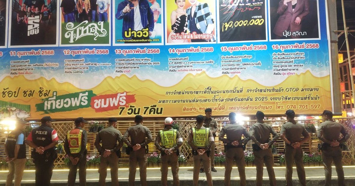 พ.ต.ท.กัมปนาท เมืองทองอ่อน สวป.สภ.ละงู ปล่อยแถวงานมรกตอันดามัน เทศบาลตำบลกำแพง 17 กุมภาพันธ์ 2025 โดย admin / ข่าวกิจกรรม,ข่าวประชาสัมพันธ์,ข่าวภารกิจผู้บังคับบัญชา,งานป้องกันปราบปราม เมื่อวันที่ 16 ก.พ. 2568 เวลา 19.15 น.ภายใต้การอำนวยการ พ.ต.อ.เอกณัฏฐ์ เหลืองแดง ผกก.สภ.ละงู สั่งการให้ พ.ต.ท.กัมปนาท เมืองทองอ่อน สวป.สภ.ละงู ,ร.ต.อ.สนิท ดำทอง รอง สว.สส.ละงู/ละงู20 พร้อม ชป.20,ชุดจราจร , ชุดรักษาความสงบเรียบร้อย ปล่อยแถวงานมรกตอันดามัน เทศบาลตำบลกำแพง