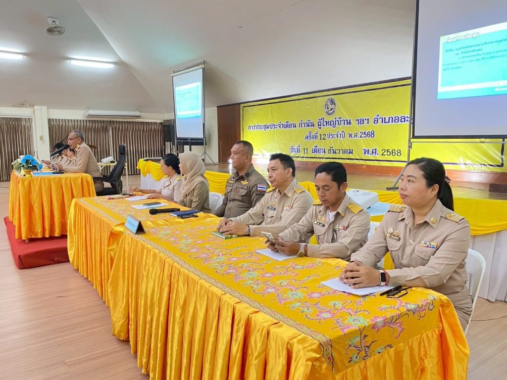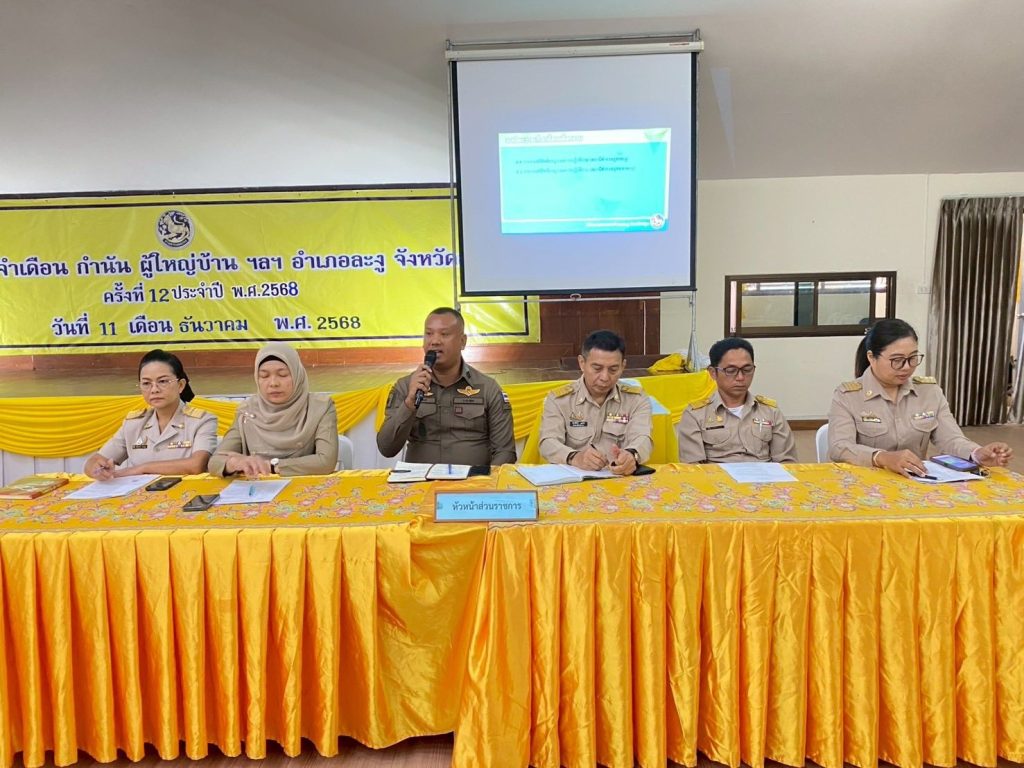 ประจำเดือนธันวาคม 2568 ตามที่ พ.ต.อ.เอกณัฏฐ์ เหลืองแดง ผกก.สภ.ละงู มอบหมายให้เป็นผู้แทนเข้าร่วม การประชุมจัดขึ้น ณ หอประชุมที่ว่าการอำเภอละงู โดยมี นายธีระพงษ์ คุ่มเคี่ยม นายอำเภอละงู เป็นประธาน พร้อมด้วยหัวหน้าส่วนราชการ และผู้นำท้องที่จากทุกตำบลในอำเภอละงูเข้าร่วมอย่างพร้อมเพรียง ภายในที่ประชุมได้มีการหารือแนวทางการทำงานร่วมกันระหว่าง หน่วยงานภาครัฐและผู้นำชุมชน เพื่อเสริมสร้างความปลอดภัย การป้องกันเหตุอาชญากรรม และการดูแลความเป็นอยู่ของประชาชนในพื้นที่อย่างใกล้ชิด