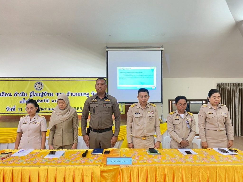 โดยมี นายธีระพงษ์ คุ่มเคี่ยม นายอำเภอละงู เป็นประธาน พร้อมด้วยหัวหน้าส่วนราชการ และผู้นำท้องที่จากทุกตำบลในอำเภอละงูเข้าร่วมอย่างพร้อมเพรียง ภายในที่ประชุมได้มีการหารือแนวทางการทำงานร่วมกันระหว่างหน่วยงานภาครัฐและผู้นำชุมชน เพื่อเสริมสร้างความปลอดภัยการป้องกันเหตุอาชญากรรม และการดูแลความเป็นอยู่ของประชาชนในพื้นที่อย่างใกล้ชิด
