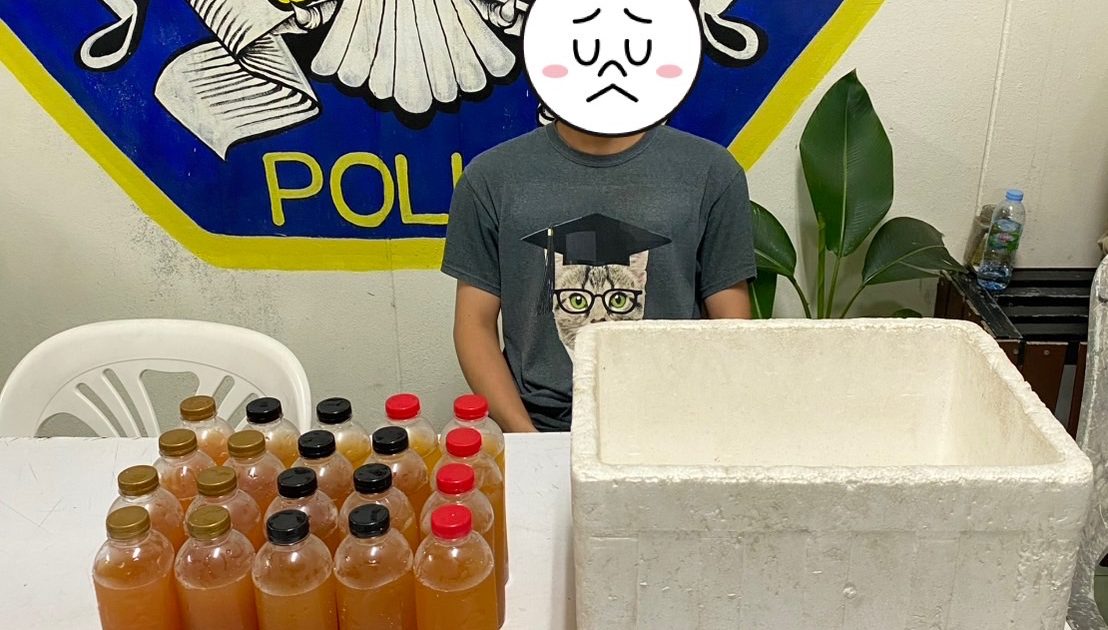 1. น้ำต้มพืชกระท่อมจำนวน 20 ขวด จำนวนน้ำพืชกระท่อมประมาณ 10 ลิตร