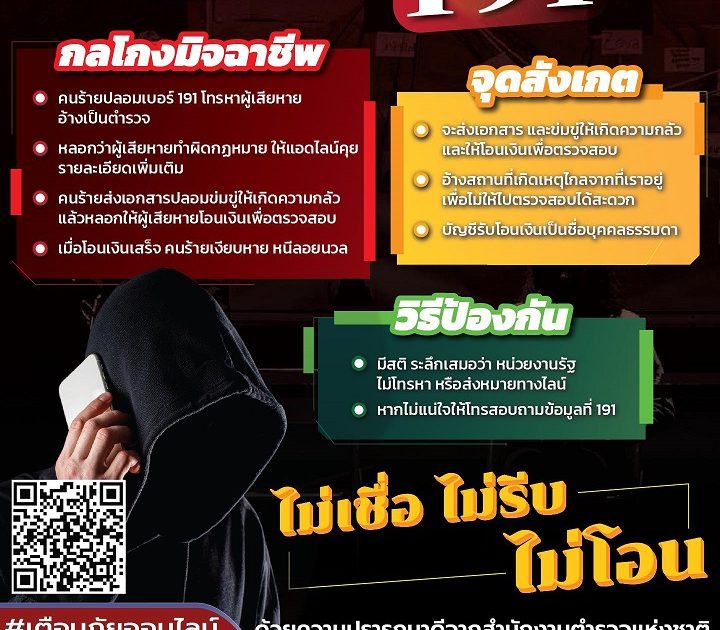 - คนร้ายปลอมเป็นเบอร์ 191 แอบอ้างเป็นเจ้าหน้าที่ตำรวจ