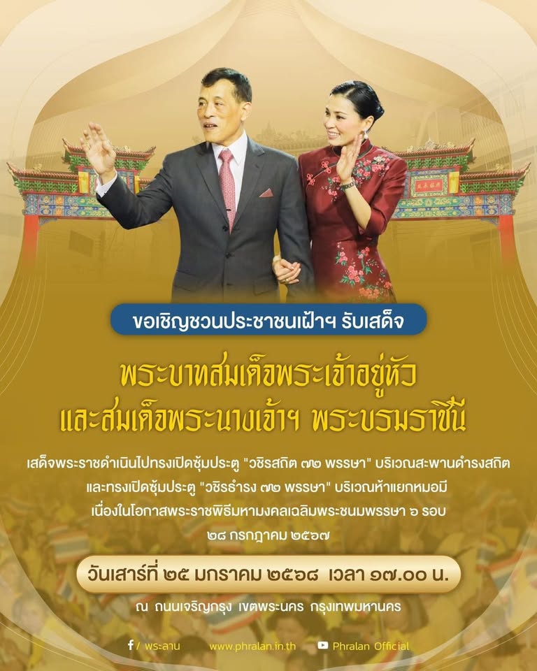 ขอเชิญชวนประชาชนเฝ้าฯ รับเสด็จ พระบาทสมเด็จพระเจ้าอยู่หัว และสมเด็จพระนางเจ้าฯ พระบรมราชินี เสด็จพระ