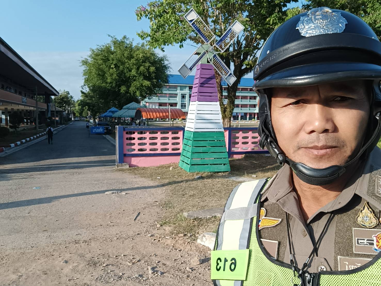ด.ต.วิวรรธน์ เมืองกลัด ผบ.หมู่(จร)ฯ ว.14 การจราจรหน้า รร.อนุบาลละงู
