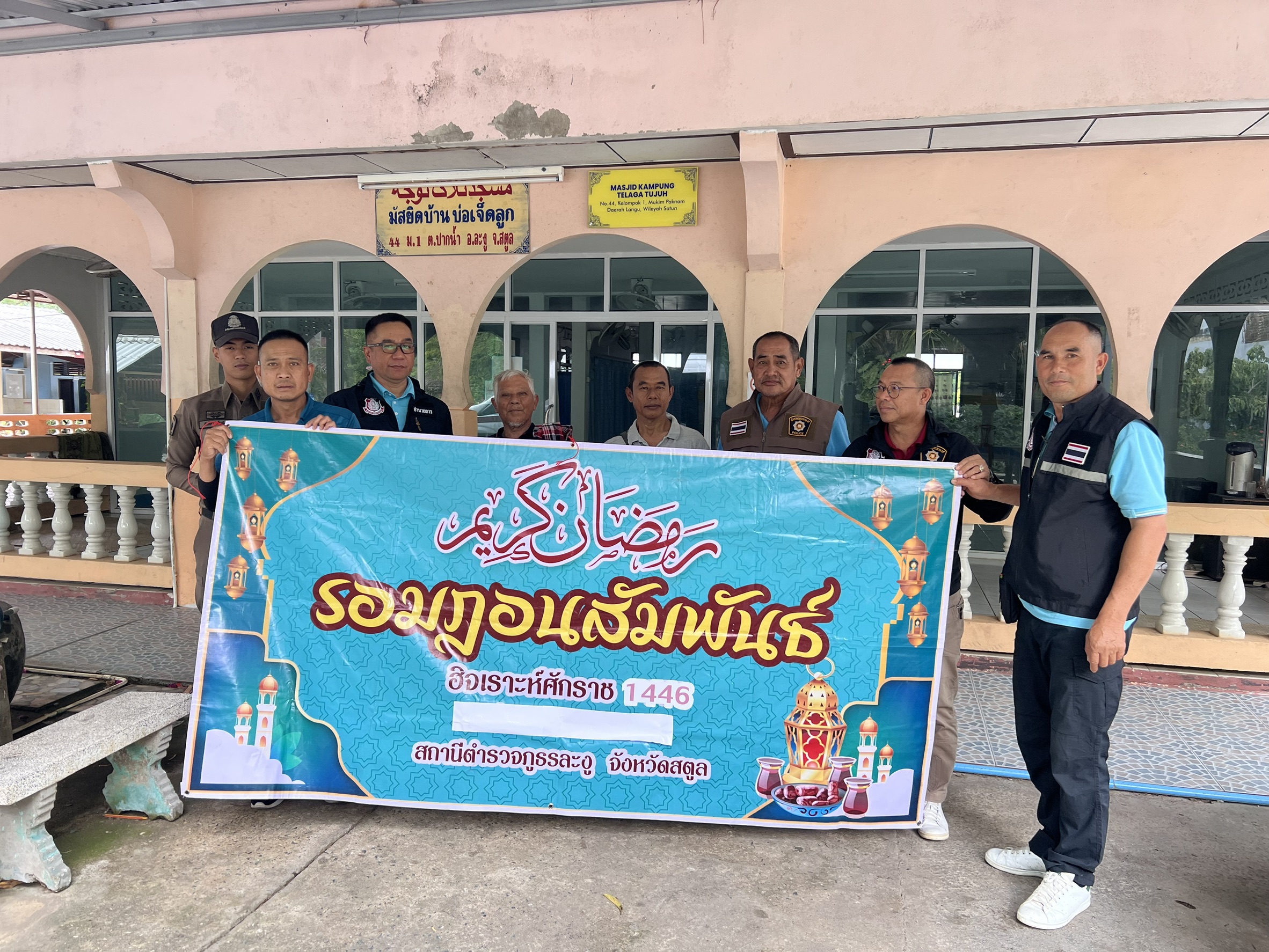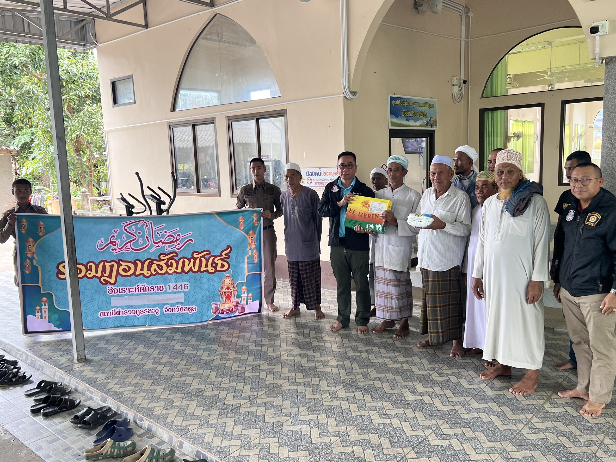 พ.ต.ต.วิทยา บ่อเตยสวป(ชส)ฯ และชุด ชมส.สภ.ละงู มอบอินทผาลัม ข้าวสารน้ำตาล ณ มัสยิดบ้านตะโล๊ะใส