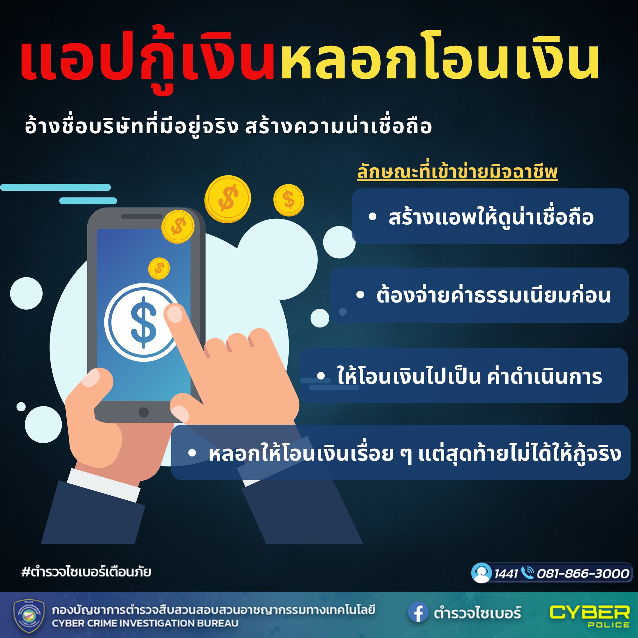 กลโกงของคนร้าย :1. โพสต์เชิญชวนให้กู้เงินออนไลน์.2. หลอกลวงสามารถกู้เงินได้ง่ายในวงเงินหลายหมื